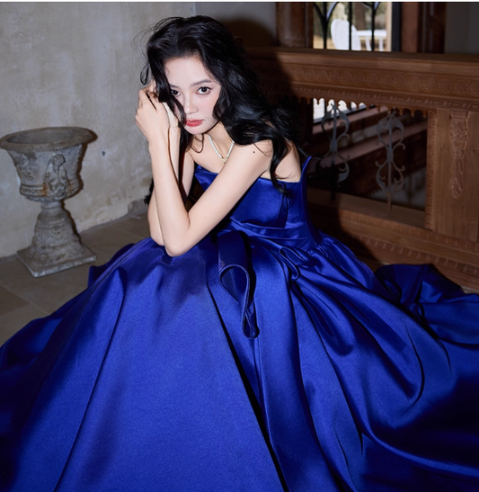 Elegant Strapless A-Line Evening Dresses, Royal Blue Formal Dresses DP2995