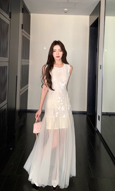 Elegant Jewel Sheath Evening Dresses, White Tulle Birthday Dresses DP2996