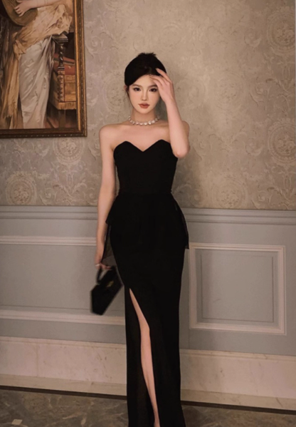 Modest Sheath Sweetheart Neck Long Evening Gown Black Formal Dress Elegant Birthday Dress DP2797