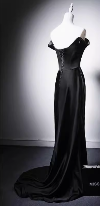 Elegant Black Mermaid Evening Gowns Off-the-shoulder Satin Long Prom Dress Modest Sleeveless Formal Dress DH2745
