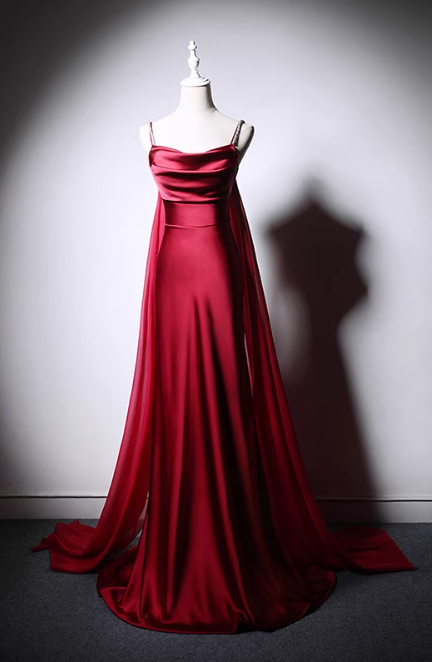 Modest Burgundy Spaghetti Strap Long Evening Gown Sheath Elegant Satin Formal Dress Open Back Party Dress DH2754