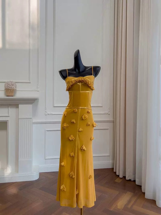 Elegant Mermaid Spaghetti Straps Yellow Sleeveless Long Evening Party Gowns Evening Formal Dresses Prom Dress W923