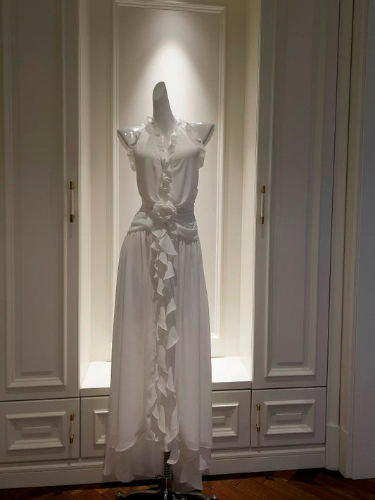 Elegant A line Halter White Sleeveless Chiffon Long Evening Party Gowns Evening Formal Dresses Prom Dress W885