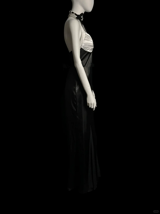 Vintage Mermaid Halter Black Satin Long Evening Party Gowns Evening Formal Dresses Prom Dress DP2032