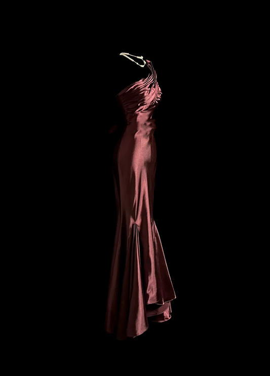 Elegant Glamour Mermaid One Shoulder Burgundy Satin Long Prom Dresses Party Dress Evening Dress DP919