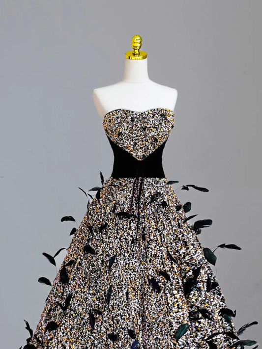 Elegant Glamour Ball Gown Strapless Black Sequin Long Prom Dresses Party Dress Evening Dress DP1578