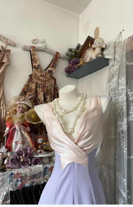 Elegant Halter Mermaid Long Prom Dress Satin Gray-Purple Evening Dress DP3785