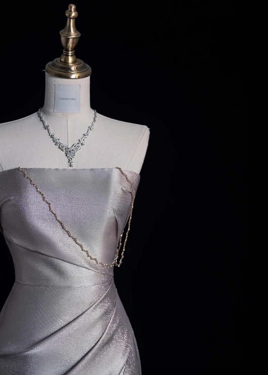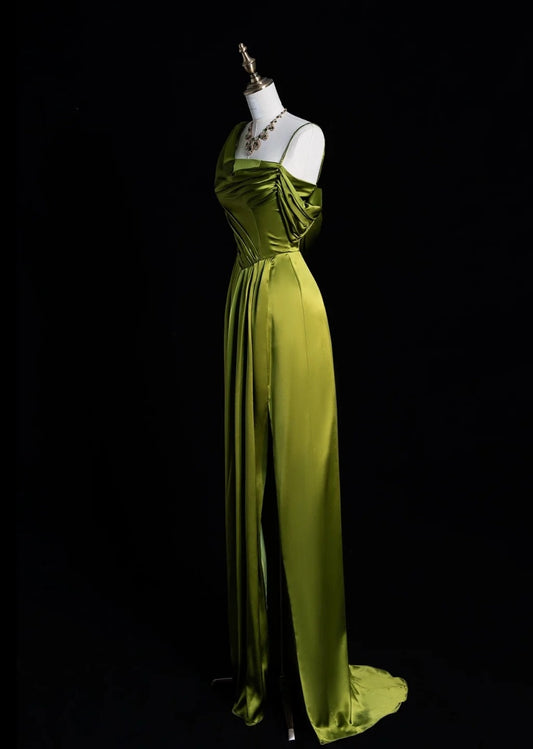 Elegant Spaghetti Strap Sheath Long Prom Dresses Satin Evening Dresses with Slits DP3727