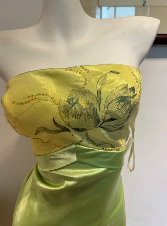 Chic Strapless A-Line Long Prom Dresses Satin Yellow Evening Dresses DP3339