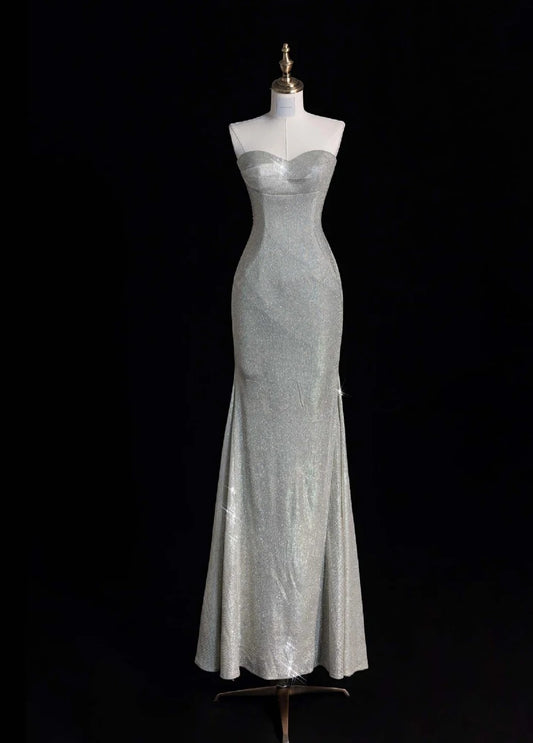 Glitter Sweetheart Mermaid Long Prom Dresses Silver Evening Dresses DP3338