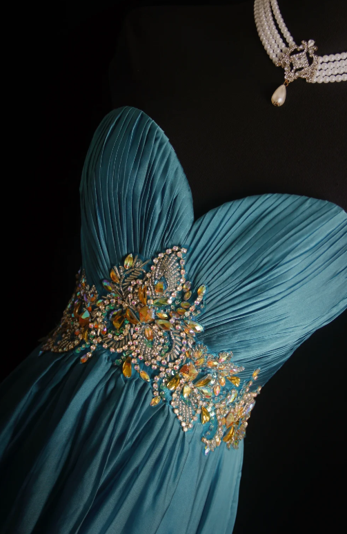 Vintage Sweetheart Neck Sheath Long Prom Dresses Chiffon Pleated Blue Evening Dress Sleeveless Formal Dresses DP3681