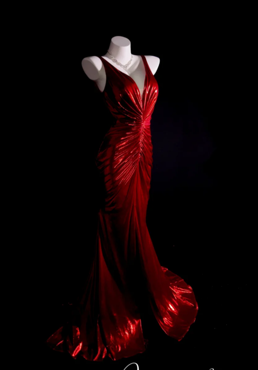 Sexy V-neck Mermaid Long Prom Dresses Backless Red Evening Dress Sleeveless Formal Dresses DP3683