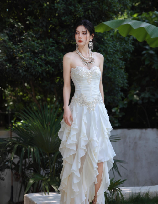 Sweet Sweetheart Neck Sheath Long Evening Dresses Chiffon Party Dresses White Birthday Dresses DP3307