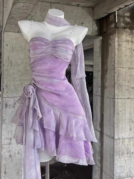 Classy A Line Spaghetti Straps Lilac Chiffon Short Mini Formal 8th Grade Homecoming Dresses Middle School Hoco Court Dress 16th Birthday Dress Hoco Outfits DH1890