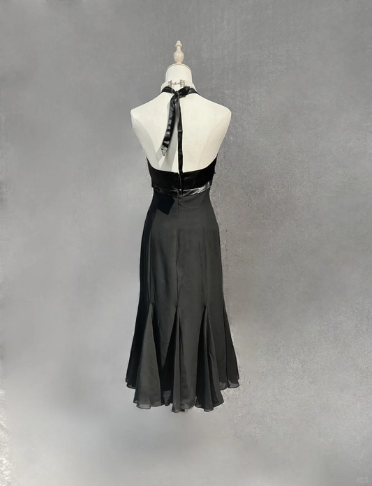 Classy A line Halter Chiffon Black Homecoming Dress Summer Hoco Dresses Cocktail Dress DP1837