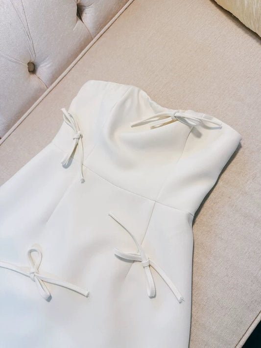 Cute A Line Strapless White Satin Formal 8th Grade Homecoming Dresses Summer Middle School Hoco Dress Homecoming Outfits DH100