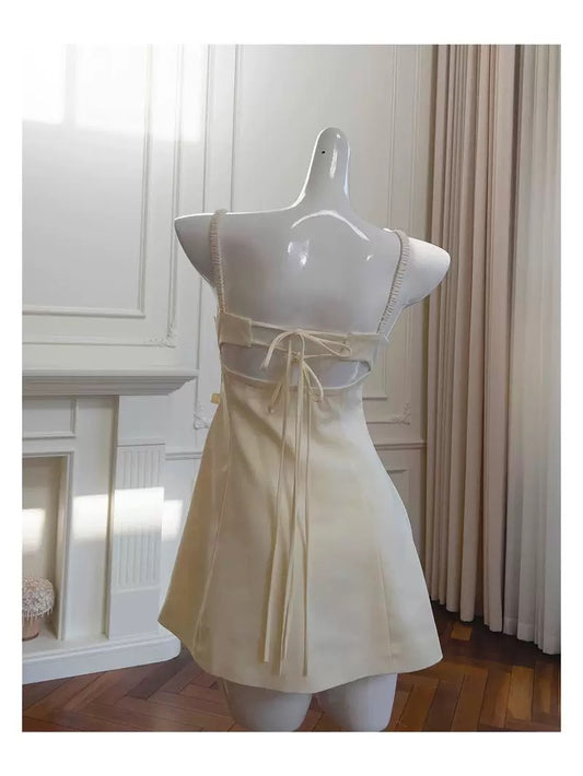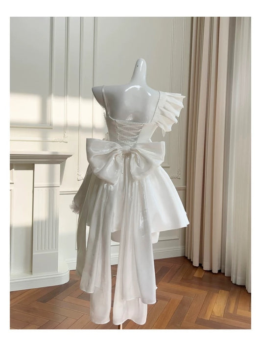 Cute A line Square Neck Short Satin White Formal 8th Grade Homecoming Dresses Summer Middle School Hoco Dress Homecoming Outfits DH97