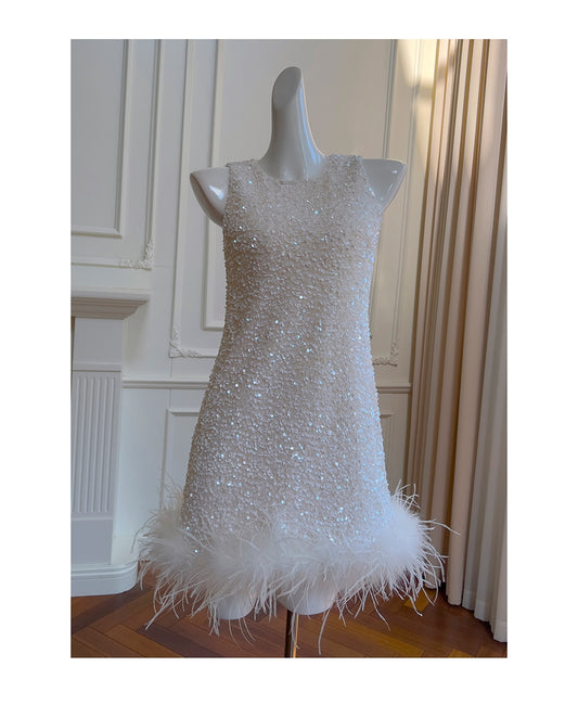 Cute A line Scoop Neck Short White Sequin Formal 8th Grade Homecoming Dresses Summer Middle School Hoco Dress Homecoming Outfits DH93