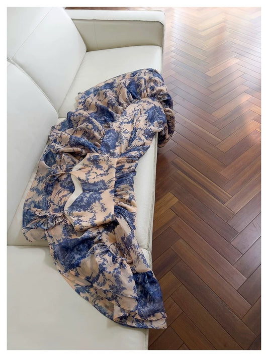 Cute High Low Square Neck Chiffon Blue Floral Formal 8th Grade Homecoming Dresses Summer Middle School Hoco Dress Homecoming Outfits DH96