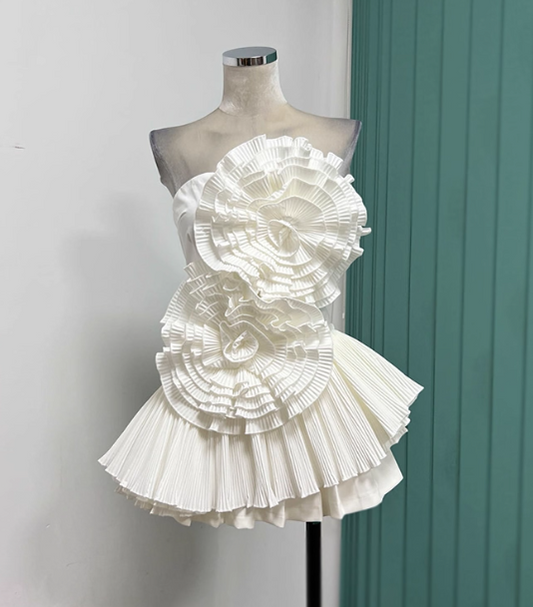 Sexy Strapless A-Line Short Prom Dresses, White Homecoming Dresses DP3133