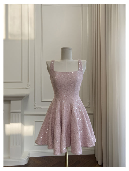 Cute A Line Square Pink Sequin Formal 8th Grade Homecoming Dresses Middle School Short Cocktail Gowns Graduation Dress Hoco Outfits D1994