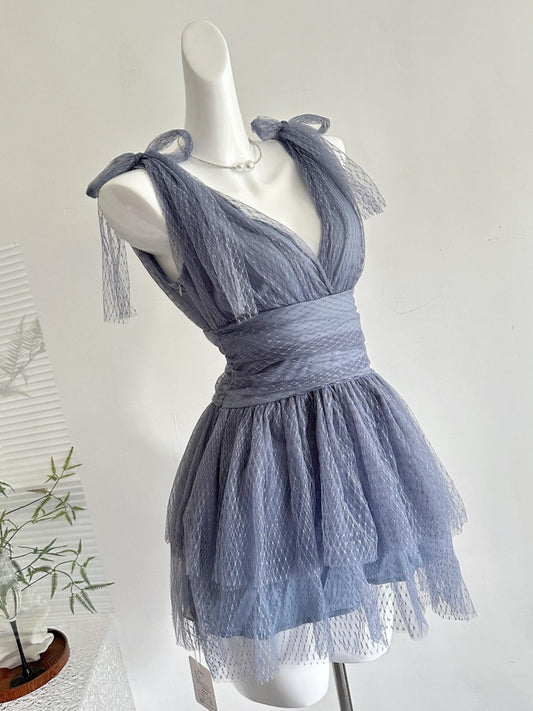 Cute A Line V Neck Tulle Gray Formal 8th Grade Homecoming Dresses Middle School Short Cocktail Gowns Graduation Dress Hoco Outfits DH2084