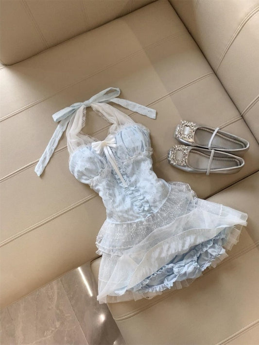 Cute A Line Halter Light Blue Tulle Formal 8th Grade Homecoming Dresses Middle School Short Cocktail Gowns Graduation Dress Hoco Outfits DH2085