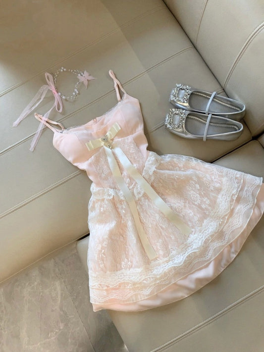 Cute Ball Gown Square Neck Lace Pink Short Mini Formal 8th Grade Homecoming Dresses Middle School Short Cocktail Dress Hoco Outfits DH2083