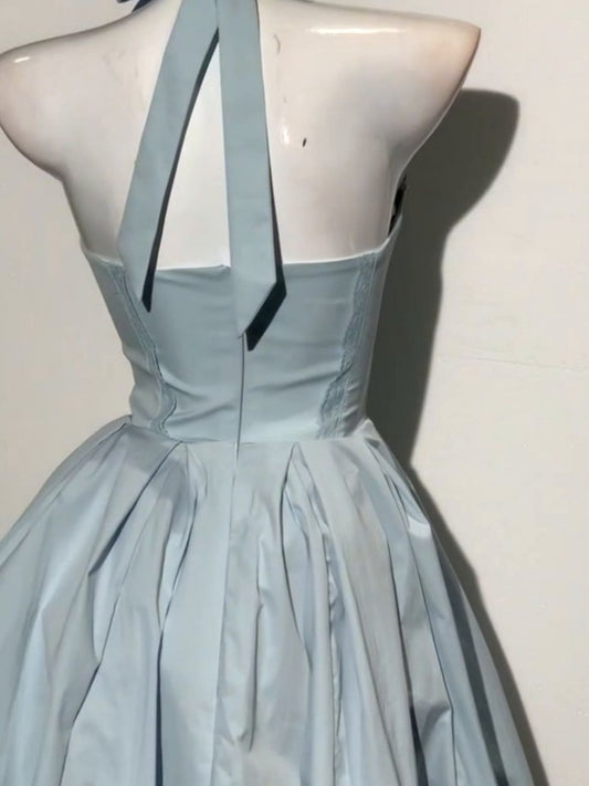 Simple A line Halter Blue Formal 8th Grade Homecoming Dresses Middle School Short Birthday Gowns Graduation Dress Hoco Outfits DH2095