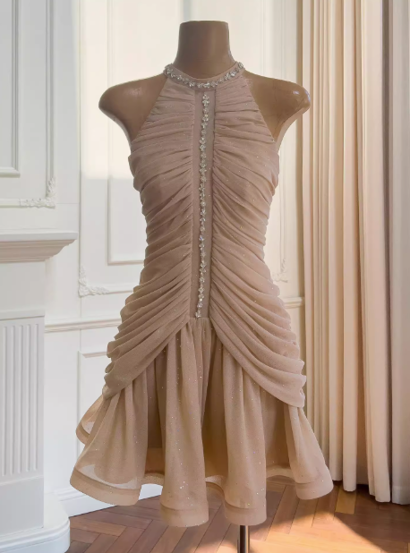 Sexy Ball Gown Scoop Neck Champagne Beads Sequin Mini Short Formal 8th Grade Homecoming Dresses Middle School Short Cocktail Dress Hoco Outfits DH1878