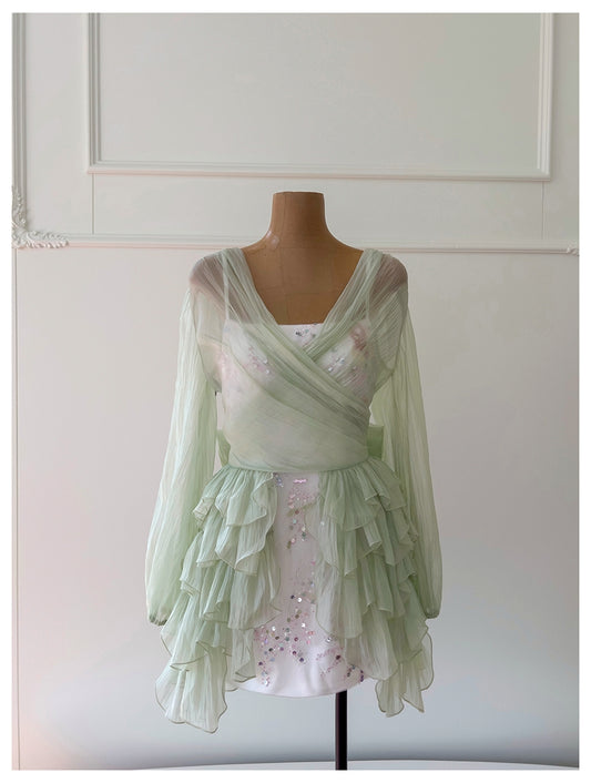 Cute A Line Spaghetti Straps Sage Green Chiffon Grad Dress Inspo Short Mini Formal 8th Grade Homecoming Dresses High School Hoco Court Dress Graduation Dress Hoco Outfits DH1901