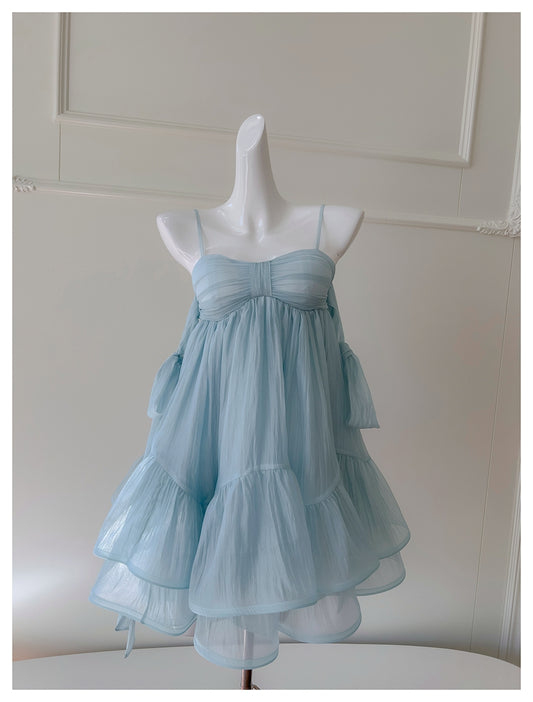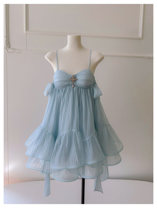 Cute A Line Spaghetti Straps Blue Backless Grad Dress Inspo Short Mini Formal 8th Grade Homecoming Dresses High School Hoco Court Dress Graduation Dress Hoco Outfits DH1904