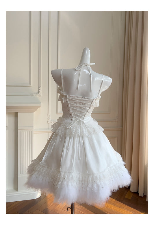 Pretty Ball Gown Spaghetti Straps Corset Back White Grad Dress Inspo Short Mini Formal 8th Grade Homecoming Dresses High School Hoco Court Dress Graduation Dress Cocktail Birthday Outfits DH1913