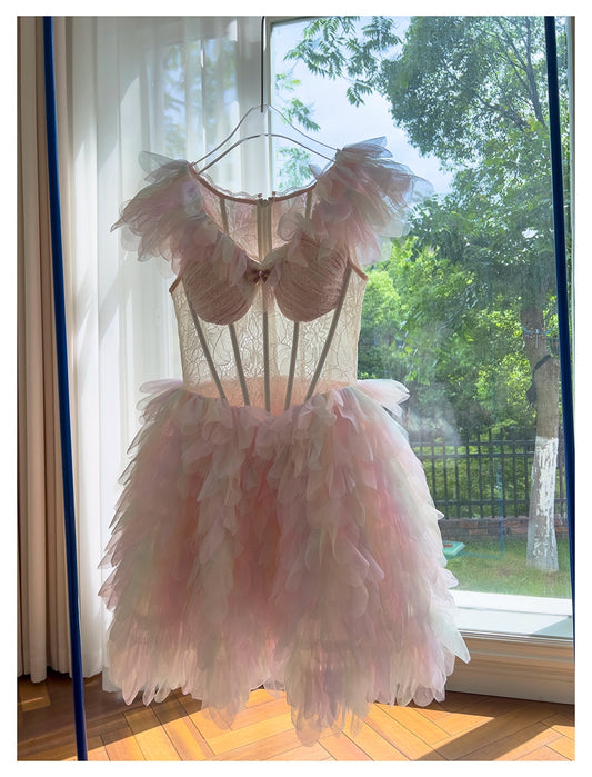 Pretty Ball Gown V Neck Pink Grad Dress Inspo Short Mini Formal 8th Grade Homecoming Dresses High School Hoco Court Dress Graduation Dress Cocktail Birthday Outfits DH1914