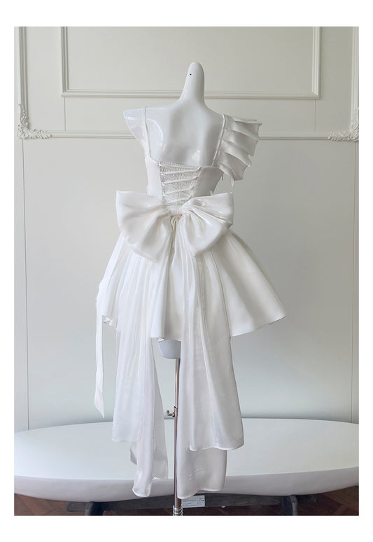 Cute A Line One Shoulder White Satin Short Mini Formal 8th Grade Homecoming Dresses High School Hoco Court Dress Graduation Dress Cocktail Outfits DH1898