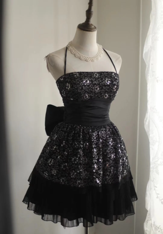 Retro A Line Halter Sequin Black Mini Short Formal 8th Grade Homecoming Dresses Summer Middle School Hoco Dress 18th Birthday Outfits DH1306