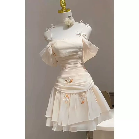 Pretty Ball Gown Spaghetti Straps White Short Formal 8th Grade Homecoming Dresses Summer Middle School Hoco Dress 6th Grade Graduation Outfits 21st Birthday Dress DH504