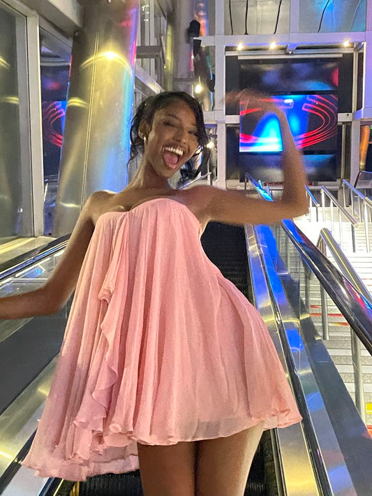 Pretty A Line Sweetheart Pink Chiffon Sleeveless Short Formal 8th Grade Homecoming Dresses Summer Middle School Hoco Dress Homecoming Outfits DH510