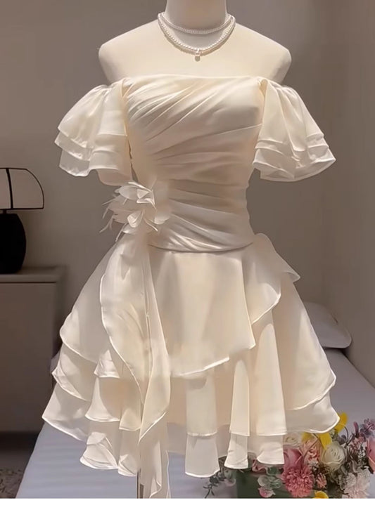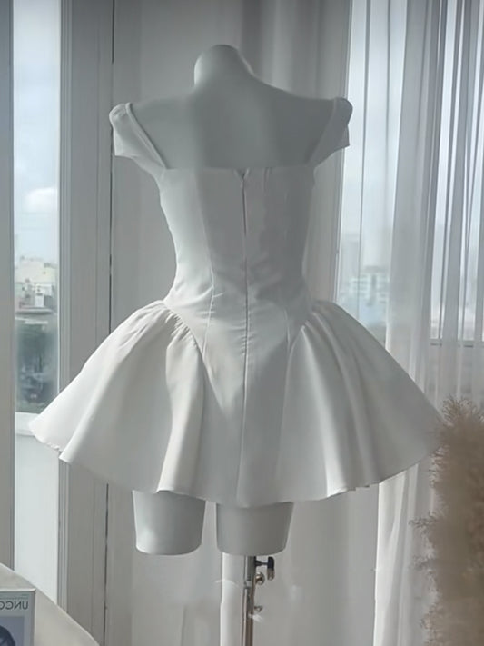 Pretty A line Off The Shoulder Chiffon White Short Formal 8th Grade Homecoming Dresses Summer Middle School Hoco Dress Homecoming Outfits DH433