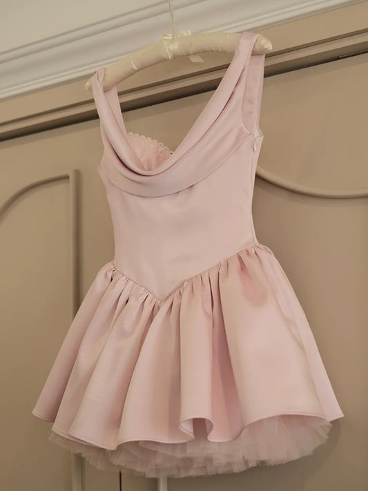 Pretty A line Square Pink Satin Short Formal 8th Grade Homecoming Dresses Summer Middle School Hoco Dress Homecoming Outfits DH418