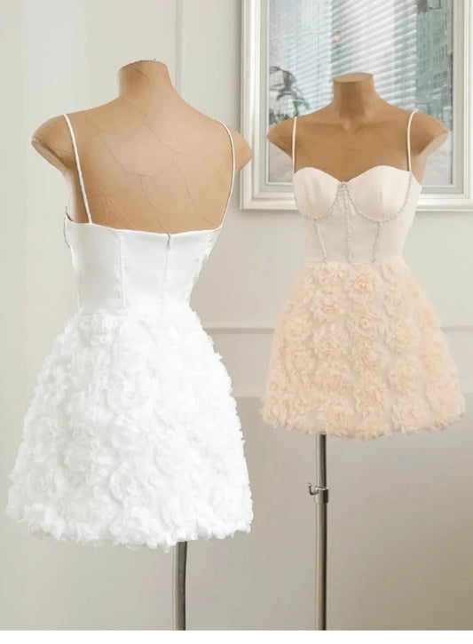 Pretty A line Spaghetti Straps Short White Formal 8th Grade Homecoming Dresses Summer Middle School Hoco Dress Homecoming Outfits DH427