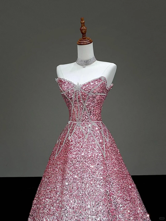Fairy-tale Ball Gown Sweetheart Sequin Pink Silver Long Prom Dresses Evening Dresses DP640