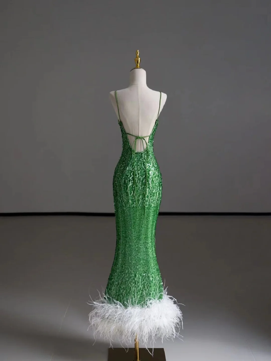 Gorgeous Sheath Spaghetti Straps Green Sleeveless Sequin Long Prom Dresses Graduation Dresses DP504
