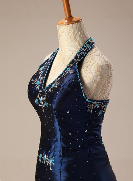 Elegant Halter Ball Gown Taffeta Long Prom Dresses, Navy Quinceanera Dresses Sweet 16 Dress DP3055