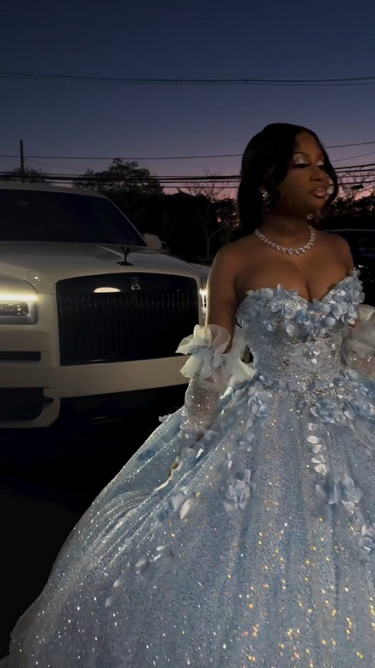 Fairy Sweetheart Ball Gown Tulle Rhinestone Long Prom Dresses Blue Quinceanera Dresses Sweet 16 Dresses DP3211
