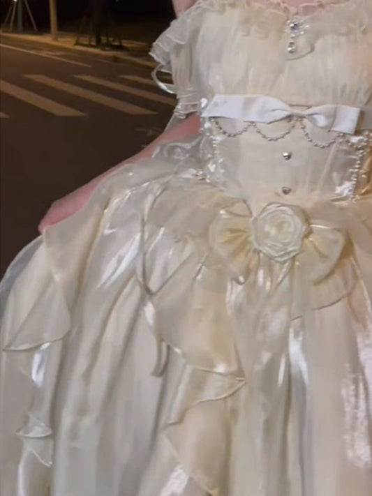 Princess Ball Gown Off The Shoulder Short Sleeves Ivory Floral 16th Chiffon Birthday Dress Lolita Dress 18th Birthday Outfits W1218