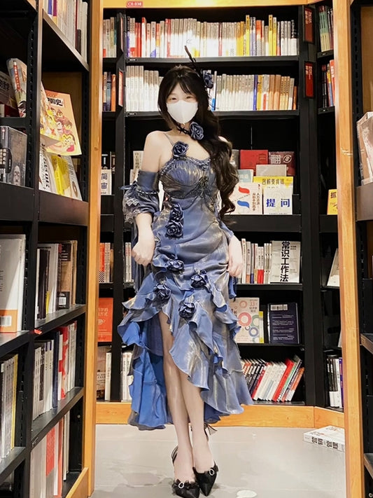 Vintage Mermaid Spaghetti Straps Blue Long Summer 18th Birthday Dress Lolita Dresses Birthday Outfits W1216