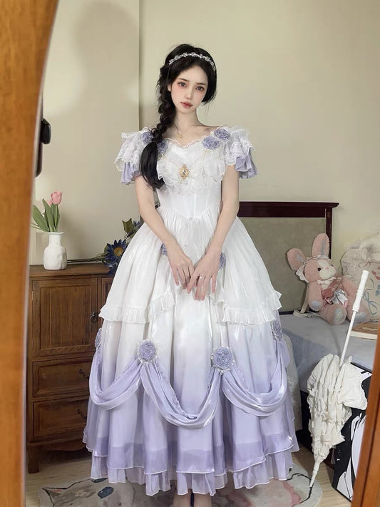 Vintage Ball Gown Off The Shoulder Short Sleeves 16th Lilac Birthday Dress Lolita Summer Dress 18th Birthday Outfits W1135