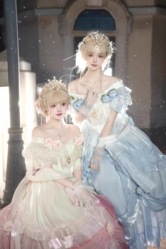 Princess Ball Gown Off The Shoulder Short Sleeves Ivory Floral 16th Chiffon Birthday Dress Lolita Dress 18th Birthday Outfits W1137