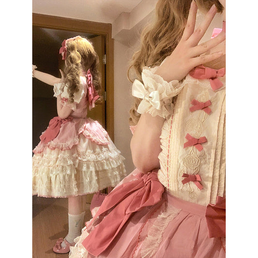Sweet Ball Gown Lolita Outfits Short Sleeves Pink 18th Birthday Dress Lolita Summer Dress Birthday Outfits W1122